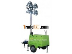 1)Telescopic, mechanical, 4stages mast up to 9 meters.2)New unique high pressurealuminum lamps.3)Heavy-duty winch design andintegral forklift pockets.5)High frequency generator workwithout ballast, easy to maintains.6)Tower rotates to330° 7)Manual winch for extendingand retracting mast.8)Separate lockable, weatherprotected, powder-coated steel doors.9)Emergency shutdownprotection.10)Residual current device(RCD)protection.11)Individual breaker switchfor each light assembly.12)Auxiliary big fueltank.13)Optional hand brake withring or ball hitch.14)Mobile Light tower ontrailer or handle pushing type can be chosen according to workingcondition Air cooled gasoline lighttower set technical parametersModel | Start-upMethoc | FuelTank | Lamps | Lampframe | ElevatingRange | Slope | Anti-WindCapacity | WalkingMethod |